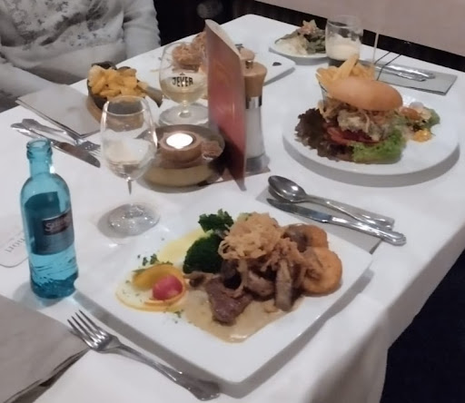 Aufgrund der Rezessionen haben wir gedacht wir speisen dort. Da uns empfohlen würde einen Tisch zu bestellen, sind wir dem nach gekommen, Das macht auch Sinn, da dort überwiegend viele Niederländer zu Gast sind. Das Service Personal ist tadellos, wir haben schnell unsere Getränke bekommen und sind auch fix mit Nachschub versorgt worden, dafür gibt es 1,5 Sterne. Vorweg wurde ins bei der Bestellung des Essens mitgeteilt, dass das Essen, eingepackt werden kann, sollte man es nicht aufbekommen. Insgesamt waren wir etwas mehr wie eine Stunde dort. Ein rib-eye Steak Teller mit Beilage würde bestellt. Dieses bestellte Gericht schmeckte schon gut, es gab schon schlechtere Steaks die wir gegessen haben, Ja klar auch schon bessere. Aber das Steak wurde wie gewünscht zubereitet. Dafür gibt es den halben stern zusätzlich. Dann hört es leider auch schon auf. Es gab zwei weitere bestellte Menüs. 2 Burger Menüs, für 10,90 €. Mein burger Menü war ein Chicken burger mit Hähnchenbrustfilet als Fleischeinlage. Leider war das Fleisch nicht durch, Was bei Geflügel ein No go ist. Ich hab es dann nochmals durchgebraten bekommen. Doch war mir der Appetit schon vergangen, als der Teller wieder kam, war die Pommes erkaltet. Die Pommes war auch total fettig, kross, als hätten die schon mal eine Runde in der Friteuse gedreht oder als waren sie viel zulange drin gewesen. Was man den Burgen zugute halten muss, es waren alles frische Zutaten, wobei beim Chicken das Fleisch mir dann zu frisch war😉 Das zweite burger Menü war auch überhaupt nicht unsers, dort war die Fleischeinlage ein Hackfleisch Pattie mit einer sehr sonderbaren Gewürz Mischung. Wir haben für das Geflügel nicht eine Entschuldigung bekommen, Das es nicht richtig durch war, selbst beim bezahlen keine Entschuldigung. Angeblich würde der Hackfleisch pattie burger sogar oft gelobt werden. Von den drei Tellern ist nur das Steak Menü komplett gegessen worden, Die anderen wurdwn Nur halb gegessen. Dafür dann 10,90€ ist nicht gerechtfertigt. Trotzdem war die Service Kraft So nett ubd wollte uns als "Entschädigung" einen Kaffee geben, den wir dankend abgelehnt haben. Wir wollten nur noch bezahlen und gehen. Werden auch nicht wieder kommen, es nicht weiterempfehlen, auch wenn der Service erwähnenswert ist. Kann dir ganzen positiven Bewertungen fürs Essen nicht nachvollziehen, sorry. Selbst die Pommes hab ich schon besser in einer Pommes...