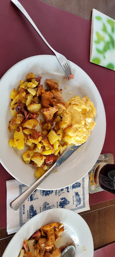 Read moreVi bestilte amerikansk salat og brasede kartofler med røræg og kantareller. Det tog 40 minutter før maden kom, og så kom brødet til dalaten først nogle minutter senere (serveret af tjeneren mens han talte privat i mobil telefon). Der var kun gæster ved fire andre borde , så det kan ikke have været travlhed, kun manglende interesse. Vi har tidligere spist her og har haft gode erfaringer, men dette er nok sidste gang...