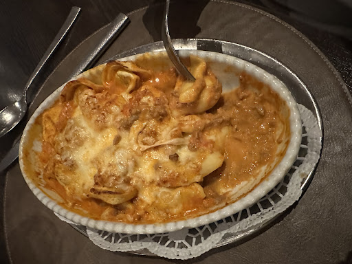 Vi bestilte to forretter, hummer suppe og bruchetta. Hummer-suppen smagte af ren terning-suppe og havde 2 stumper af overkogt hummerhaler som føltes som tyggegummi. Bruchettaen var slet ikke bedre. Brødet var smagsløst og selve "toppingen" som i italien serveres på brødet og hvor toppingen er lavet frisk, blev serveret på en kedelig skål ved siden af... og lignede noget som blev tilberedt om morgenen og først serveret om aftenen., derfor var der en masse væske og lignede nærmere en tomatsuppe. Toppingen var fyldt med kedelige smagsløse krydderier såsom basilikum og oregano. Da jeg spurgte ejeren efter aftensmaden om hvorfor de gjorde det sådan, mente han at toppingen skal marineres og at det normalt... Hvilket jeg aldrig har hørt om, da toppingen skal netop være frisk-skåret og simpel krydret. Til vores hovedret bestilte jeg pasta med svampe og salcicia. Som endu engang skuffede. Det smagte ens-artet og pastaen var overkogt. Kantarellerne som er jo en fantastisk svamp og sæsonpræget... smagte af intet. Og deres salsiccia smagte af billigt produceret skinke. Min kære bestilte lam-ryg-bøffer i olie... og Ja, olie fik vi rigeligt af og det smagte elendigt. Havde det været en blindsmagning ville vi ikke engang gætte at det var lam - Det smagte så ligegyldigt.