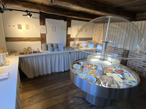 Read moreWir waren mit zwei Erwachsenen und zwei Kindern an einem Sonntag zum Frühstück. Das Gebäude, ein Fachwerkhaus, ist von innen und außen wirklich toll. Anscheinend wurde innen keine Akustikmaßnahmen vorgenommen, so dass die Akustik im Gebäude aufgrund des Lärms an eine Bahnhofshalle erinnert: sehr laut! Der Service ist freundlich und sehr bemüht und unter Berücksichtigung der Vielzahl an Kunden wirklich flott. Warum dann eine solche schlechte Bewertung? Das Buffet ist sehr übersichtlich, man vergleiche es mal mit einem Extrablatt oder Bar-Celona. Leere Dinge, in unserem Fall Rührei, Tomate Mozzarella oder auch Aufschnitt scheinen erst dann neu gemacht zu werden, wenn sie vollends leer sind. Das Resultat ist, dass es lange dauert, bis wieder aufgefüllt ist. Wenigstens ist der Kaffee inklusive. Am meisten hat uns aber folgendes geärgert: Wir hatten einen Gutschein für uns vier für ein Frühstück an einem Sonntag. Als wir bezahlt haben wurde geschaut wann dieser Gutschein ausgestellt wurde, wie viel seinerzeit bezahlt wurde und wir mussten die Differenz nachzahlen. Wir finden, das geht gar nicht. Wenn ich einen Gutschein für ein Frühstück habe, dann erwarte ich auch, dass ich eins erhalte: ohne Zuzahlung!Wenn das für das Restaurant kalkulatorisch zu unsicher ist sollte man stattdessen einen Gutschein für X Euro ausstellen, aber so kamen wir uns schon verar….t vor. Wir kommen nicht wieder, alles in allem passt das...