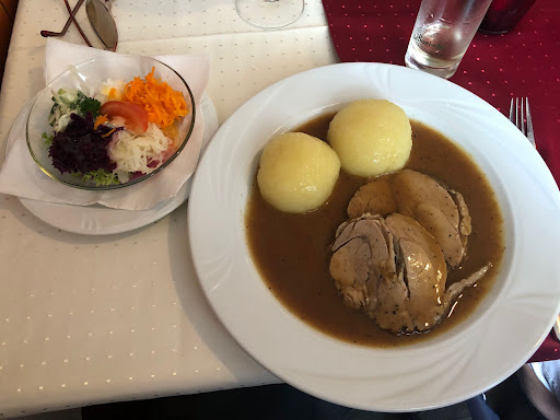 Sehr schöne Gaststätte mit wirklich gutem Essen. Die Karte ist nicht sehr groß und umfasste bei unserem Besuch neben ein paar Basisgerichten wie Salat, Suppe oder Kindermenüs 4-5 Gerichte. Das ist aber gar nicht schlimm. Im Gegenteil. Hier spürt man noch die Liebe zum kochen und durch die kleine Karte auch ist auch eine gute Qualität gegeben. Keine riesige Eventgastronomie mit 50 Gerichten. Dazu kommt das es auch besondere Gerichte gibt. Mein Känguru war sehr gut geschmort und die Soße war ein Traum. Die Klöße kommen ebenfalls nicht aus der Tüte und schmecken fast wie bei Mama 😄. Aber auch die Bedienung war sehr engagiert und hat sich viel Mühe gegeben uns alles Recht zu machen. Sie war sehr freundlich und natürlich. Kein aufgesetztes Lächeln und keine bissigen Bemerkungen wie bei anderen ihres Berufsstandes. Um einen Tisch zu bekommen sollte man allerdings einen Tisch...