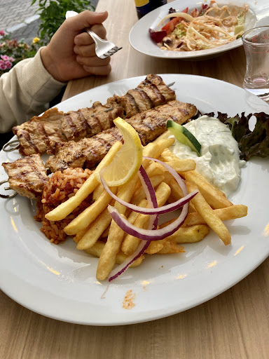Read moreZuviel Knoblauch, ich dachte aus meinem Mund kommt das nie, aber es war zuviel. Es war so dominant, dass man wirklich nichts anderes geschmeckt hatte. Das Fleisch war küchentechnisch tot gebraten und die Bratkartoffeln waren frittiert, der Reis hat zu meinem Gericht komplett gefehlt. Wir lieben Griechenland aber ggf. waren wir in den Landstrichen, wo man so extrem kocht noch nicht. Die Portionen sind reichlich und auch für einen "Gutesser" wie mich fast nicht stemmbar. Der Salat war gelungen, welcher uns als Vorspeise serviert wurde. Die Preise sind moderat bzw. der Zeit entsprechend. Die Bedienung freundlich und kundenorientiert. Die Einrichtung ist stimmig, doch die besten Bilder an der Wand nützen nichts, wenn das Lüftungskonzept in der Küche versagt. Irgendwie hat der Brat- und Küchengeruch ein gemütliches Zusammensitzen gedämpft. Alles in Allem...