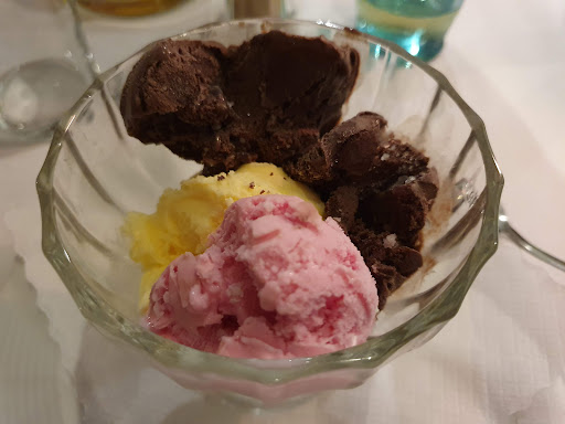 Sehr enttäuschend war das gemischte Eis als Nachtisch. Es kam ohne jegliche Garnierung. Keine Schokoladensauce oder ein Blatt Minze darauf. Sehr lieblos angerichtet.