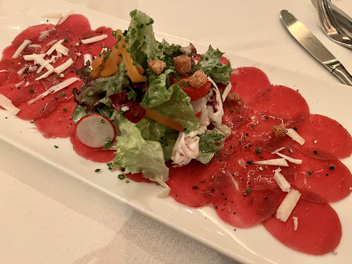 Diesmal waren wir nicht zum Menükarussell, sondern wieder mit Freunden dort essen. Wir hatten das Herbst-Menü vorbestellt- als Vorspeise das Carpaccio mit Salat und Steinpilzremoulade, als Hauptgang für alle sechs Personen den am Knochen gebratenen Rehrücken mit Schalottenjus, Rahmspitzkohl und Kartoffelplätzchen oder Bratkartoffeln. Besser kann Rehrücken nicht zubereitet werden. Perfekt auf den Punkt gebraten und dazu eine sehr, sehr leckere Sauce. Zum Service hatte ich ja bereits geschrieben, sehr aufmerksam und sympathisch. Wieder ein toller Abend. Waren heute dort zum 2ten Mal zum Menü-Karussell-Essen. Die 4 Gänge waren genau richtig portioniert. Schon der erste Gang, war do lecker, den hätten wir uns gut als Hauptgericht vorstellen können. Jeder weitere Gang war perfekt abgestimmt. Dazu die sehr aufmerksame, nette und zuvorkommende Bedienung (echt super Service) So lecker haben wir lange nicht gegessen. Nach der Renovierung sitzt man auch noch schöner, wie in einem großen Wintergarten. Insgesamt ein perfekter Abend. Wir werden bestimmt auch ohne Menü-Karussell bald wiederkommen!...