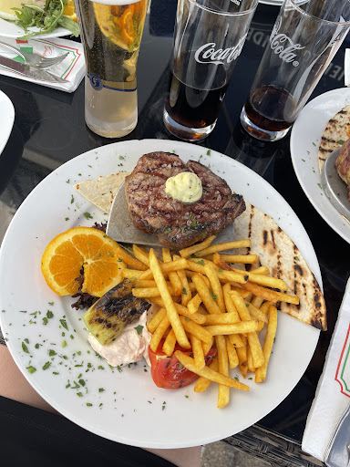 Bestellt haben wir: Rumpsteak, Nudelauflauf mit Hack und Käse überbacken und Zigeunerschnitzel, sowie Bruschetta als Vorspeise. Positiv ist, dass das Essen schnell und auch sehr heiß gebracht wurde. Vom geschmacklichen her war der Auflauf am besten.Der Geschmack war gut und die Portion mehr als ausreichend, ist zu empfehlen. Das Schnitzel war weder frisch noch lecker, wahrscheinlich billiges Tiefkühl, das Letscho und die Pommes dazu waren angemessen lecker. Leider wurde uns weder Ketchup noch Mayo dazu angeboten, die Teller wurden wortlos vor die Nase gestellt ,,Guten Appetit" gesagt und das wars, daher auch kein Trinkgeld. Die Mimik des Service ließ auch zu wünschen ürbig, man hat sich nicht sehr willkommen gefühlt. Das Rumpsteak (200g) war leider auch nicht gut und sehr geschmacklos. Dazu gab es eine winzige Portion Pommes und etwas Zaziki, für 25€ einfach zu wenig! Positiv anzumerken ist, dass man einen guten Salat dazu bekommt. Insgesamt für 3 Personen 80€ bezahlt. Wenn die Qualität und die Portionen besser wären, ist der Preis auch angemessen aber für die schlechte geschmackliche Qualität ist es überteuert. Das Restaurant ist optisch in Ordnung man merkt aber, dass es mal eine kleine Renovierung/ Modernisierung vertragen könnte. Und schön wär, wenn auf jedem Tisch Salz und Pfeffer stehen würde und man sich nicht von einem anderen Tisch...