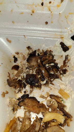 Als dann mein lang erwarteter Korfuteller kam, war ich über die Menge und Größe etwas enttäuscht. Davon sollte ich satt werden?? Das Rumpsteak war ziemlich dünn und gut durchgebraten... geschmacklich also ungefähr "zähe Schuhsohle". Das war ziemlich enttäuschend. Die 10 Gyroshäppchen waren schnell weggeatmet, wie auch der eine Bissen an der Lammkeule (die geschmacklich am besten abschnitt).