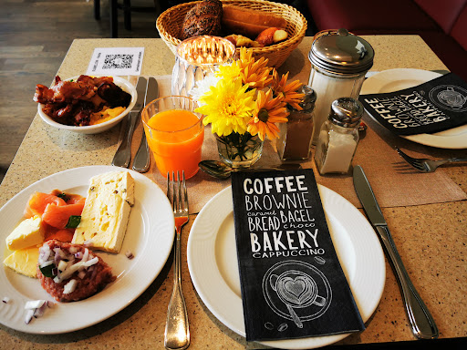 Wir waren heute zum Frühstück da. Leider alles andere als reichlich und auch nichts besonders wie z.B. Lachs, Zwiebelmett oder Fleischsalat, nur Standard. Haben am Anfang grade mal 4 Brötchen fürc2 Erwachsene und 2 kleine Kinder bekommen. Die Brötchen sehr hart und den Kakao mochte auch keiner von uns trinken, wobei das vielleicht noch Geschmackssache ist. Die Bedingung von uns war auch nicht grade freundlich, hat uns nicht einmal darauf hingewiesen, dass wir auf Nachfrage mehr haben können, dies sagte uns auf Nachfrage eine andere Bedienung. Wäre wohl sonst eh nicht dazu gekommen, da nur am Anfang um die Sachen zu bringen jemand da war, danach hat man vergeblich gewartet, dass mal jemand in die Nähe des eigenen Tisches kommt. Wir mussten immer zum Tresen dafür gehen. Dann haben wir mit Kinderwagen oben einen Platz zugewiesen bekommen, sodass wir ihn die paar Stufen rauf tragen mussten, es waren noch fast alle Tische frei, also wäre auch eine spontane Umdisponierung nicht so schwer gewesen. Im einzelnen waren die Dinge nicht so wild, aber im ganzen gesehen schon ziemlich nervig, wir kommen auf jedenfall...