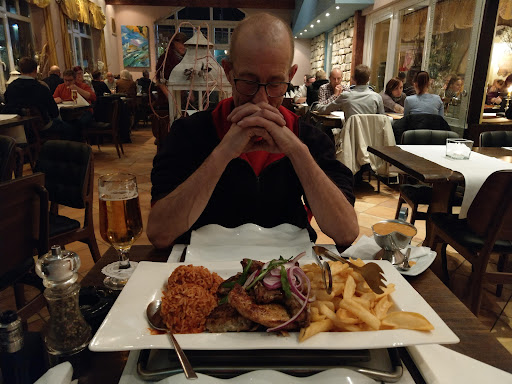 Read moreWir waren heute Abend dort essen. Wir wurden an einen Tisch platziert und uns wurden die Speisekarten gerade auf den Tisch geworfen. Diese Kellnerin kam aber nicht mehr um die Bestellung aufzunehmen, es kam aufeinmal jemand anderes. Alles gut, wir haben unsere Bestellung aufgegeben. Gyros mit Kalamaris und Schweinemedallions. Was soll ich sagen, das Gyros war kalt, der Kalamaris schmeckte nach nichts und lies sich kauen wie Kaugummi. Die Schweinemedallions waren okay standart. Die Pommes nicht gewürzt, und das Knoblauchbrot hat vielleicht mal neben Knoblauch gelegen. Zudem hat sich die Kellnerin vom Anfang am Nebentisch lauthals mit zwei Gästen unterhalten, welche wohl frühere Schulkameraden gewesen sein müssen, in einer Lautstärke und Fremdwörtern. Fürchterlich. Der Kellner kam und fragte, ob alles in Ordnung war, wir haben dann erzählt, was nicht in Ordnung war. Naja, von diesem Kellner keine Spur mehr zu sehen. Noch nicht einmal der Tisch wurde fertig abgeräumt. Nach längerem Warten haben wir bei der Kellnerin vom Anfang die Rechnung verlangt und ob sie so nett wäre uns ein Taxi zu bestellen. Da wir hier in Heide nur mit einem Taxiunternehmen fahren haben wir ihr dies natürlich auch gesagt. Sogar die Telefonnummer haben wir ihr gegeben. Schlussendlich haben wir draußen aufs Taxi gewartet und es kam….. natürlich ein ganz anderes Taxiunternehmen. Wären wir nicht zum Taxi gegangen und hätten nachgefragt, ob dies von der Gastronomie gerufen worden ist, würden wir jetzt wahrscheinlich noch dort stehen.