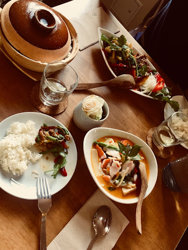 We went spontaneously into the restaurant today at around 6.40pm and asked the service girl if they have Thai chef because I would like to eat in Thai restaurant only if they have thai chef as they know how to cook Authentic Thai cuisine and she replied me that yes, the chef is Thai and he did Ausbildung in Thailand or something. I was like why Thai need to do Ausbildung for cooking Thai food? But anyway we agreed to give it a try. She informed us we can only eat like 40mins as they are fully book at 8pm and we agreed on that. Then we sat down, order the food with a service guy who isn’t Thai and he’s a bit rude. We ordered Noodle soup with duck and with beef and papaya salad. Noodle soup was ok, nothing like Thai except noodle but papaya salad was disaster. It wasn’t Thai way at all!!!! Nothing in the restaurant is Thai especially hospitality, nothing like Thai food and zero Thai atmosphere except a Buddha statue who sits at the entrance of the restaurant. We won’t take anyone there, we wouldn’t recommend this restaurant to anyone. And we left at around 7.50pm and the restaurant was half empty and we have no idea why the staff said it’s fully book. Btw I’m Thai and I know well about...