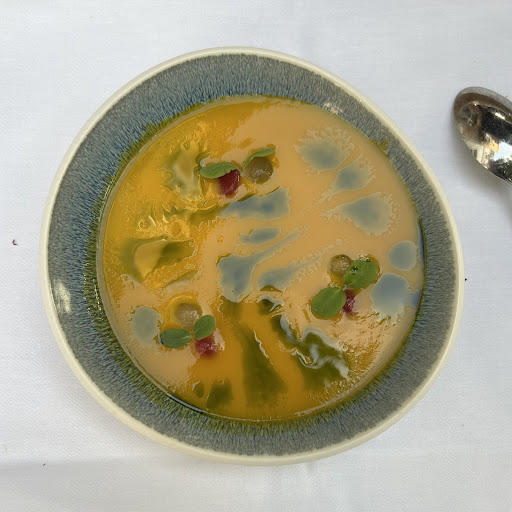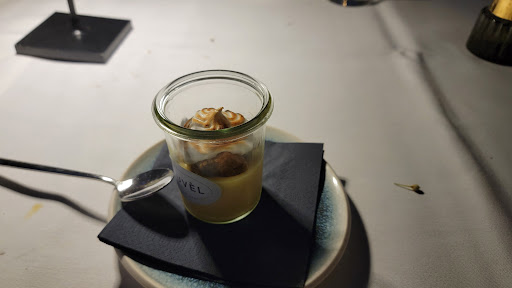 Besonders positiv hervorzuheben ist das unglaublich sympathische und professionelle Team, das den Abend perfekt begleitet hat. Unser Tisch lag direkt an der Garderobe, was nicht optimal war, da Gäste und Mitarbeiter immer wieder zu ihren Mänteln mussten. Doch die Freundlichkeit und Aufmerksamkeit des Personals machten das mehr als wett, und als kleine Wiedergutmachung gab es ein Glas Champagner aufs Haus. Zum Abschluss wurden uns sogar noch zwei Gläser Wein zum Dessert serviert – eine wunderbare Geste, die den Abend perfekt abgerundet hat.