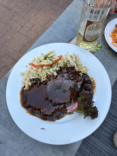 The service is so, so, so bad... We went inside and had to wait in the salon for 15 minutes and nobody showed(it was raining outside).. later on the rain stopped and we went to the Biergarten and there was the waitress. When we asked for our reservation she said to go over there and there should be enough space for everyone.. she came 15 minutes later to bring the menu. We asked about light because it was pretty dark and she said that the light is not working. So we had to use our phone lights to see the menu and later on to see the food. Unbelievable! She was pretty arrogant! She came 3 times to the table: 1: bring the menus 2. Bring the drinks 3 bring the food. At the end I went to ask if we could pay and she said that we (all 10 single people) need to go to the bar, because she doesn't see anything at the table. Really?!? So unprofessional and rude service as nowhere else!!! The food was okay. The only plus is that you are getting soup and a salad to...