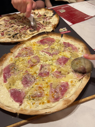 Read moreThe words to sum it up: fully satisfying! We chose the all you can eat option and it was definitely worth it. The flammkuchen was deliciously crispy and thin. We especially love the flammkuchen of the day which is the asparagus. In overall, we it was hard to choose our favourites as so many flavours were really good. Berlin and Hong Kong were on top of our favourite list as well. One tip from us, do not forgo the banana flambiert flammkuchen as dessert, it was a perfect end of the dinner. Moreover, we were especially surprised on how fast the next flammkuchen were served! Definitely a must visit restaurant...