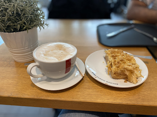 Read moreA lovely spot to stop by, with plenty of seating and free Wi-Fi. I had a cappuccino (€2.85) and a sweet bread (€2), both of which I enjoyed. The biggest highlight is the view of the crossroads — the glass walls make the space bright and airy.