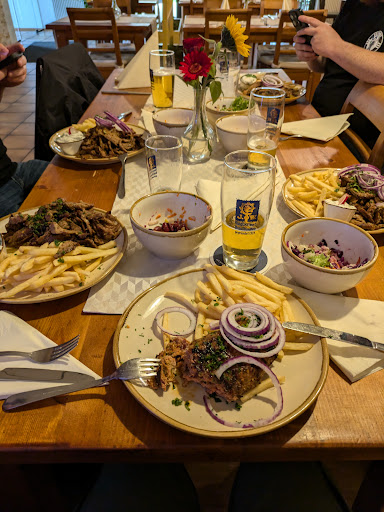 Also keine Ahnung, egal wo ich hingehe ob es ein Grieche ist oder auch nicht. Wenn ich mir _Gyros bestelle ist immer wenigstens ein klecks Zaziki dabei oder eine hausgemachte Soße ... aber da ist halt nix GAR NIX dabei und das für knapp 17 Euro. Es geht ja nicht gleich darum eine riesige Portion drauf zu machen ... wenigstens ein...