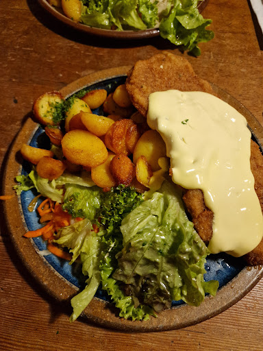 It's hard to say how good this restaurant really is. There were three of us, and my father's rump steak was very very good, cooked exactly as he liked it. Myself, I ordered the holzfaeller schnitzel, which was overcooked. The side dishes were excellent however, in particular the spaetzle, which were homemade (recommended). My mother order the spargel mit kartoffeln, which arrived cold. They returned with a steaming dish after having apparently reheated it instead of starting from scratch, which caused them to be very watery. A disappointment. So all in all, choose wisely, and your meal might be worth a return trip. I myself would give them a second chance, but only once. My...