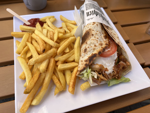 We came accross Gino's by chance on our late night's walk. We were not on empty stomachs so we just ordered one Gino's special kebab to share between the two of us. Here the kebab was wrapped in a tortilla instead of the usual yufka flatbread and we liked it very much. We liked the perfect balance of the grilled meat, veggies and yoghurt sauce, not saulty and creamy which is very much to our taste. We also came back a second night to order exactly the same. And on our last day, we had to bring our children to show them our kebab discoveries. The chips were not our usual snack to order but we have 2 chip lovers in the family and they rated the crispy chips 9/10. Lastly, I have to give 5/5 stars to the staffs. For a fastfood eatery, out of the 3 times we visited, we were greeted very warmly by the staffs. Short encounter but nice ones. And last but not least, we love how the outdoor seats lend a perfect view to the end of the street where you can see the Karl Theodore's bridge's towers and part of the Heidelberg castle. It was a short but nice experience that we would...