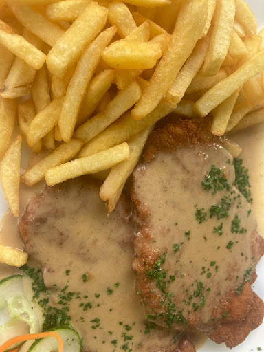 Very nice restaurant, very friendly and attentive service, good quality, large portions. Menu could be a bit more extensive and creative, but offers a lot of classics in high quality. Parking available at the property. Nice building and seating. Would be giving 4.5...