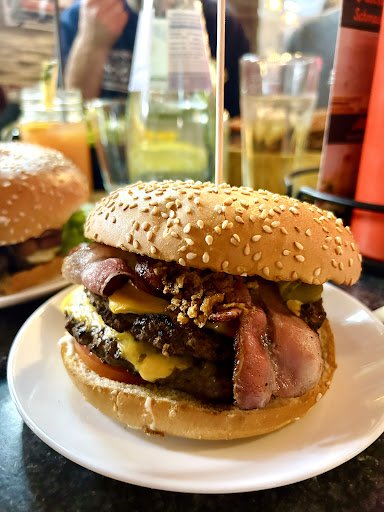 This was a very disappointing experience from the start. I came all the way cause the reviews were not terrible (neither really good) and I was craving for a good burger. I have far and wide experience in burger places along and across the world and, on picture the burgers seemed one thing and then it ended up being some other. This was some of the worst overall experiences I ever got in Germany and I never thought of it cause the place seemed chill and the first pint of beer was really well poured. But then the waiters, who were sitting on a table beside me literally hanging out with friends which seemed at the beginning a friendly way quickly turned into impolite. They took crazy long to bring a burger that when it finally arrived was completely underwhelming: patties watery and lacking structure, with bacon so overcooked it had turned bitter and blackened. The bread soggy outside and undercooked and burnt on the inside. The flavors felt flat, the texture off, and nothing on the plate suggested care or balance. I don’t even gave a bite to it when I saw it was literally swimming into a puddle or whatever liquid it did sweat, even the bacon was dripping that watery and greasy brown liquid. Service didn’t help—the staff came across as indifferent at best, borderline arrogant at worst, with no real attention to the table or interest in feedback and they were rude to me for no reason. It was so surprising and frustrating, especially after asking properly to change the dish and bring a new one properly cooked they dismissed me and washed me away. The only redeeming factor was the beer—cold, well-poured, and clearly better handled than the food. Otherwise, nothing lived up to the expectations. So I paid for the beer and left the place. Not...