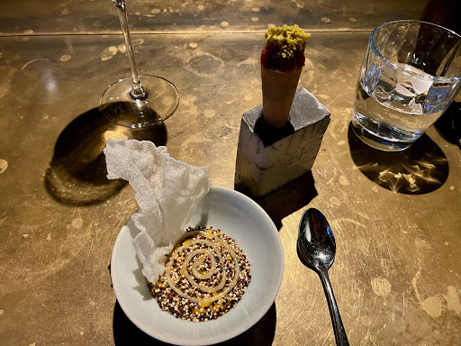 I enjoyed my dinning experience here, and I call it an experience because its was an entire evening, it was a good experience. The food was incredible a few of the dishes served were so simple but where more then the sum of their parts, the pig ear course stands out in the tasting menu for this experience. There were many stand out courses, I would recommend if you are eating with a group, to have more then one of the drink pairings, we had one wine pairing and one non wine pairing, the drinks brought you a sense of what was coming next, but both the wine and the non alcoholic offering paired very well with each course. The service was very good considering the size of the staff, the food was excellent. As this restaurant gets more and more converts, I fear it will be harder and harder to get a table, as the food, the setting and the goals of this restaurant give me the sense that this is an up and coming restaurant that I will see in more and more food posts. A few helpful tips if you want to venture to a truly amazing dinning experience, 1. They cannot accept credit cards because of the location, so it is for the time being cash only. 2. Make reservations in advance. 3. Its about a 15 minute ride, from old town Heidelberg, so plan accordingly. The next time i visit if I can get reservations, I will go with the Non alcoholic pairing and choose my favorite white wine out of the cellar, as you can't go wrong either but the non alcoholic pairing went amazingly well with...
