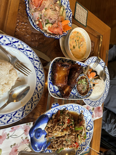 Everything is brought out in dishes with candles to keep it warm, and with huge portion sizes, you'll probably want the extra time to finish everything. The decor is also great with authentic Thai stuff all around, but it manages to still feel refined and somewhat upscale despite the affordable prices.