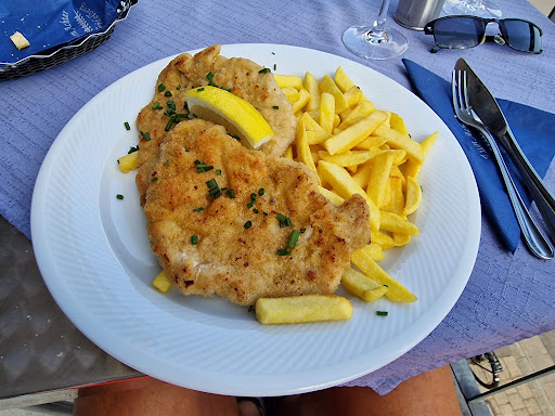 Read moreWaren aufgrund der guten Bewertungen nach einem Tagestrip in Heidelberg im Biergarten zum Achter. Der Biergarten ist schön am Neckar gelegen, Getränke wurden rasch aufgenommen und gebracht, die Preise für die Getränke sind auch fair gehalten. Wir wollten allerdings auch etwas Essen und fragen die Bedienung ob wir eine Bestellung aufgeben könnten. Daraufhin haben wir erfahren, dass das Essen direkt telefonisch im Restaurant auf der anderen Straßenseite bestellt werden muss - etwas ungewöhnlich aber hat grundsätzlich unproblematisch funktioniert die Bestellung aufzugeben. Die Wartezeit Betrug weit über eine halbe Stunde und das obwohl im Restaurant sichtlich nicht wahnsinnig viel los war und auch im Biergarten außer dem Nebentisch keiner etwas zu Essen bestellt hat. Als die zwei Portionen Schnitzel mit Pommes und Beilagensalat ankamen, wussten wir auch warum. Das Essen wurde in Tupperschüsseln geliefert, was schon einen gewissen Kantinencharakter hatte. Die Schnitzel waren teilweise verbrannt und furztocken, die Pommes waren total übersalzen und labrig und die Mayonnaise für die nochmal extra 1€ abgerechnet wurde war verdächtig warm, als stünde sie schon den ganzen Tag in der Sonne. Für knapp 40€ (ohne Getränke) haben wir schon lange nicht mehr so schlecht gegessen, Reklamation sind auch nicht möglich, da direkt bei Lieferung abkassiert wird und dann keiner mehr gesehen war. Wir waren wirklich enttäuscht und können das Restaurant definitiv nicht empfehlen. Für ein paar Getränke im Biergarten ist es...