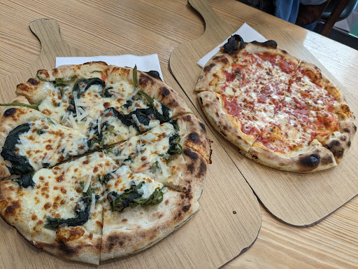 Read moreUsually crowded, but today must be a special day. Nestled between decidedly hipster locations selling vegan soups and French pastries, this very fitting restaurant sells pizza slices by weight. We tried a few slices with eggplant, olives, mozzarella...all of them were superb. Seating was limited, but we were lucky and got the table on the street. It was a perfect meal with the sun shining and the kids out on the street.