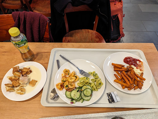 ранее я бы никогда не подумала, что студенческая столовка может оказаться таким волшебным и вдохновляющим местом. в далеких краях, откуда я приехала, может тоже существуют столовые, но они либо с большой наценкой, либо с не самой аппетитной едой. этот отзыв будет очень взвешенным, ведь мне выпала честь посетить данный общепит целых три раза. сразу хочу заметить ажиотаж, который тут стоит, что указывает на ценность этого места. отдельным плюсом является тот факт, что не только студенты, а и любые желающие могут продегустировать местную кухню. два основных преимущества это несомненно цена и разнообразие. столько позиций я не видела даже на самом выдающемся шведском столе любого пятизвездочного отеля. сверх того не может не впечатлить культурное разнообразие блюд. сегодня, например, как никогда меня порадовало наличие муссаки, а также, зная из надежных источников, в счастливые дни здесь подают борщ. тем не менее, еда не только разнообразная, а еще очень вкусная и свежая. такому уровню могут позавидовать мировые мишленовские повора. для людей, которые отверглись от животных продуктов, здесь присутствует масса веганских опций, которые ничем не уступают их мясным прототипам. кроме основного меню здесь также присутствует большой выбор десертов и напитков, включая даже алкогольные. и всё это можно приобрести по очень выгодной цене, что, конечно, не может не радовать. например, студентам обед здесь может обойтись в начиная от трех евро!!! таких цен уже нет нигде в рамках евросоюза. отдельно хочу отметить дружелюбный персонал, легкую систему оплаты и набора еды, наличие пункта принятия бутылок с возвратом залога, а также нововведенные кассы самообслуживания, которые уже полюбились многими социофобами. напоследок хочу отметить интерьер и экстерьер данного помещения. фьюжн современного освещения со старинными стенами разбивает любые шаблоны об архитектуре. помещение очень просторное и может практически без особого труда вместить всех желающих отведать местные изыски. очень выгодным является расположение - прямо в сердце города, напротив таких важных административных учреждений как библиотека и главный корпус университета. еще выделяется вид из окон на местную реку и внутренний дворик, который, я уверена, добавляет еще множество плюсов в теплое время года. конечно, у каждой медали есть две стороны, и это место не исключение. в воскресенье очень редко можно довольствоваться привилегией трапезничать тут. также, к сожалению, с 2025го года по желанию высших лиц это прекрасное заведение закрывается на перестройку без уточнения срока. в заключении хочу сказать, что эта столовая очень подняла мою планку, и теперь я без понятия, как питаться дальше...