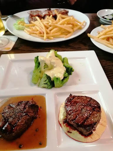 Read moreWir waren am Samstagabend zwischen halb acht und halb zehn dort und trotzdem war der Laden wahnsinnig wenig besucht, wir waren vielleicht drei Tische dort und die Atmosphäre war entsprechend dürftig. Da half dann auch nicht, dass sich sehr lange auf diverse Bedienungen hat warten lassen, was ansonsten womöglich nicht so stark aufgefallen wäre. Mein eigenes Essen (argentinisches Steak) war sehr gut, obwohl mein eigener Wunsch (Medium Rare) nicht wahrgenommen wurde, da es wohl der Zubereitungsart des Kochs wiederstrebte: geschmeckt hat es glücklicherweise trotzdem. Bei meinen Begleitungen gab es leider einige Probleme, die ich allerdings nicht stark in meine eigene Bewertung mit einbeziehen möchte und die auch von der Kellnerin mit einem gratis Getränk pro Person entschuldigt wurden. Die Preise sind wie relativ üblich für Steakhäuser teils ziemlich üppig, im großen Ganzen jedoch nicht außergewöhnlich teuer. Zu sechst kamen wir am Ende bei insgesamt ~180€ inklusive Trinkgeld heraus, wobei nur ich ein Steak gegessen habe und der Rest dementsprechend etwas günstiger davongekommen ist. Auch wenn es alles in allem für mich persönlich absolut keine schlechte Erfahrung war, würde ich den Laden selbst auch nicht zwingend wärmstens empfehlen. Ziemlich gut aber...