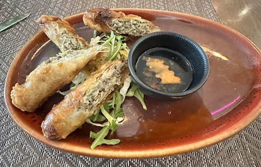 Das Essen war insgesamt gut. Die Frühlingsrollen hatten für eine Vorspeise die perfekte Größe, waren ansprechend angerichtet und sehr gut gewürzt. Zusammen mit dem Dip war das eine sehr angenehme Abwechslung zu dem sonst üblichen Einheitsgeschmack.