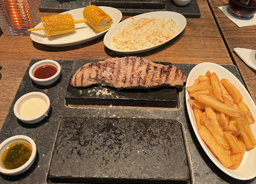 Read moreSagen wir mal so: Man kann natürlich immer der Hammelherde hinterlaufen und wenn alle alles gaaaaaaaaaaaaaaaanz toll finden dieser Auffassung folgen. ABACCO´s Steakhouse stellt einen mächtigen Hype dar, allerdings können wir den nicht nachvollziehen. Fakt ist schlichtweg, dass wir wesentlich preiswerter schon besser gegessen haben. Das Servicepersonal ist ohne Zweifel überaus freundlich, aufmerksam und zuvorkommend. Auch das Ambiente mit gemeinschaftlichen Silvester-Raclette ähnlichem Selbstbraten des Fleisches auf heißen Steinen am Tisch ist ohne Frage eine sehr gesellige urige Idee. Jedoch muss man sagen, dass die Preise für die gebotenen Lebensmittel sprich Steaks und Beilagen maßlos überzogen sind, sehr grenzwertig. Der Preis von 175€ den wir für das gemeinsame Essen incl. 1 Getränk pro Person von 4 Personen bezahlen mussten ist einfach abartig um es mal deutlich zu sagen. Als preiswert oder angemessen kann man das nur empfinden, wenn man zu den betuchteren Gästen zählt - frei nach dem Motto man gönnt sich ja sonst nichts. Für so einen Preis erwarte ich mehr Qualität und Quantität der Lebensmittel und vor Allem vollständig fertig zubereitete und servierte Mahlzeiten mit einem umfangreicheren und qualitativ besseren Menü. Natürlich kann man unter dem Mantel es könne nun jeder den Garpunkt ob englisch, medium oder durch seines Steaks selbst bestimmen dem Ganzen einen vermeintlich positiven Touch geben, tatsächlich macht es sich die Küche damit recht einfach weil sie das Fleisch ja nur anbrät und die restliche Arbeit den Gästen überlässt, die diesen Vorgang dann bitteschön als tolles Erlebnis zu empfinden haben. Sorry, aber wir vermögen dem Hype nicht zu folgen, wollen unser gastronomisches Erlebnis auch nicht schön reden damit wir auch schön vogue bleiben und finden es dort schlicht völlig überkandidelt mit völlig überzogenen Preisen. Sorry. Mag sein, dass 99% der Gäste es dort gaaaaaaaanz toll finden, aber unser Ding ist das leider nicht. Als I-Tüpfelchen kann man die Behindertentoilette kritisieren, die zugleich auch Umkleidekabine für das Personal zu sein scheint. Aus einem offenen Kleiderschrank quellen einem Schuhe und Kleidung entgegen. Das Clopapier liegt teilweise abgespult am Boden, die WC-Schüssel hängt für ein Behinderten-WC viel zu tief, sichere Haltevorrichtungen gibt es es eigentlich zu wenig. In einer Beurteilung würde ich schreiben man ist da wohl stets bemüht, d.h. die Behinderten-Toilette verdient diese Bezeichnung eigentlich nicht und Kleidung und Schuhe des Personals hat da einfach nichts zu suchen, da werfen sich Fragen nach der Einhaltung von Hygiene-Vorschriften auf. Wir sind unserer von ABACCO´s schwärmenden Tochter zuliebe dort essen gewesen und werden, da braucht ABACCO´s auch keine Angst zu haben dort nicht mehr hingehen. Das Preis-Leistungsverhältnis stimmt unseres Erachtens einfach nicht und lässt sich allem Hype zum Trotz auch nicht schönreden. Einziger Lichtblick ist das sehr freundliche und serviceorientierte Personal. Aber sonst? Nein, wie gesagt das Preis-Leistungverhältnis stimmt wie gesagt einfach nicht. Über die überzogene Preisgestaltung sollte man dort dringend nachdenken. Sorry.. Trotzdem schöne Weihnachten für das Personal & ein...