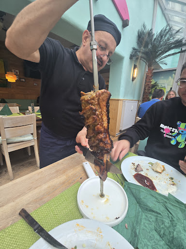 Read moreNachdem wir im Internet von der "neueröffnung" des Lokals gelesen hatten wollte ich unbedingt schnell mal hin. Wir waren in der Vergangenheit schon einige Mal in anderen Restuarants welches dieses Modell angeboten hatten und waren immer begeistert. Gestern allerding wurden wir etwas enttäuscht. Nachdem wir herzlich Empfangen wurde ging es sehr schnell los. Und das schnell hat uns dann auch den restlichen "kurzen" Abend begleitet. Denn nachdem wir uns am Buffet, welches außer den Bohnen meiner Meinung nach nicht viel mit Brasilien zu tun hatte, mit diversen Salaten und Antipasti eingedeckt haben kamen im Minutentakt die Mitarbeiter mit den Spiesen an unserern Tisch. Manchmal lag glaube ich nichtmal eine Minute dazwischen. Das war ich von den anderen Restaurants nicht gewohnt, hier hat man sich Zeit gelassen und man konnte jeden Spieß in Ruhe geniesen. Gestern hatten wir dann schnell 4-5 Fleischsorten auf dem Teller. Leider haben die Kellner immer sehr genuschelt sodass wir immer nachfragen mussten was jetzt gerade auf dem Spieß war. Der Blick der Angestellten war immer i.wo im Raum leider nicht am Tisch. Hier hätte ich mir mehr Aufmerksam und evtl. mal ein Lächeln gewünscht. Das Fleisch an sich war gut gewürzt und von der Qualität her gut. Die Wurst hat mir nocht geschmeckt ist aber geschmackssache. Für den Stolzen Preis von 38€ (nur für das Essen) p.P. hätte ich mir aber doch mehr erwartet, vor allem bei den Beilagen. Für diesen Preis bekomme ich auch schon ein gutes STEAK im Steakhaus. Wir werden das Romario nicht mehr besuchen, würden aber den netten Inhabern wünschen sich die Kritik zu Herzen zu nehmen und wünschen...
