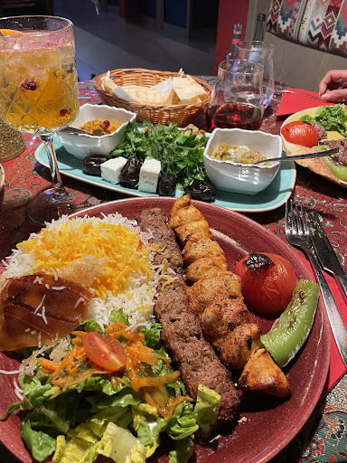 I had an incredible experience at this Persian restaurant! The ambiance was lovely, with a beautiful design and authentic accessories from Iran. Some seating arrangements even resembled the traditional Iranian style, where you sit on a bed-like setup. The service was top-notch, and the staff was exceptionally friendly. Despite a one-hour delay due to an accident, they handled it graciously when we called to inform them. I had made a reservation in advance for my boyfriend's birthday, and they surprised us with a delightful decoration featuring flowers and candles. As for the food, we started with the dough, and I opted for a cola. Surprisingly, this dough wasn't sour; it had a delightful hint of saltiness, rose, and mint, making it a unique and enjoyable drink. For the main dish, we ordered a mixed grill platter for three people, as I wanted to try various items. The rice was incredibly delicious, and the tahdig was simply out of this world. The jeweled rice was so addictive; I could have had a plate of those "jewels" alone! The meats, especially the kebab Kubideh and barg, were juicy and mouthwatering. I also noticed that the restaurant is kids friendly, with several kids present, and they provide chairs for kids as well. Overall, I highly recommend this restaurant, and I'm already looking forward to returning!