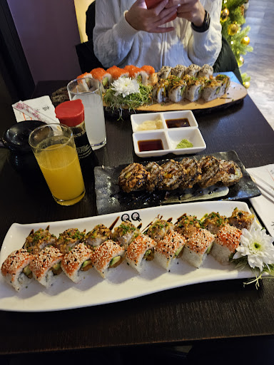Read moreDas QQ Sushi ist geschmacklich sehr zu empfehlen und das Preis-/ Leistungsverhältnis sehr gut. Die Bar mit den Mosaiksteinen ist wunderschön und das Lichtkonzept sowie die Ambiente traumhaft. Sämtliche Mitarbeiter sind sehr freundlich und das Essen kommt sehr schnell an den Tisch. Auch das Bestellen zum Abholen klappt einwandfrei. Die Vorspeisen und das Sushi sind sehr lecker und jedesmal eine Freude. Vorallem das Gyoza schmeckt ganz anders als ich es gewohnt bin, aber wirklich sehr gut. Das Menü 5 ist mit Abstand unser liebstes. Der Lachs schmeckt unglaublich gut und zergeht auf der Zunge. Die panierten Sake Futomaki sind ein Traum. Für eine kleine Portion Soße 2€ zu verlangen finde ich allerdings viel zu teuer und richtige Essstäbchen im Restaurant wären auch schöner als aus Holz. Seine Reste kann man sich zwar einpacken lassen, aber leider wurden diese zusammen mit der Wasabi in den selben Behälter gelegt, so dass mein ganzes Sushi nach Wasabi geschmeckt hat. Das fand ich wirklich schade, vor allem da mir Wasabi nicht schmeckt und bei Bestellungen zum Abholen auch die Wasabi immer in kleinen extra Behältern kommt. Das Sushi klebt teilweise so stark zusammen, dass es bei dem Versuch zum Trennen aufrollt oder kaputt geht. Die Ebi Inside Out (44) Sushirolle hat mir leider mit den Röstzwiebeln und der senfartigen Soße nicht geschmeckt und das Mochi auch nicht. Es ist auch nicht vorteilhaft das die Geschmacksrichtung bei dem Mochi nicht dabei steht. Ebenso den Eingangsbereich muss ich bemängeln. Restaurantbesucher sowie Bestellungsabholer stehen gemischt im Eingangsbereich. Das ist wirklich nicht optimal organisiert. Zum Schluss lässt sich allerdings nur sagen, dass wir definitiv weiterhin Kunden bleiben und gerne hier etwas essen...