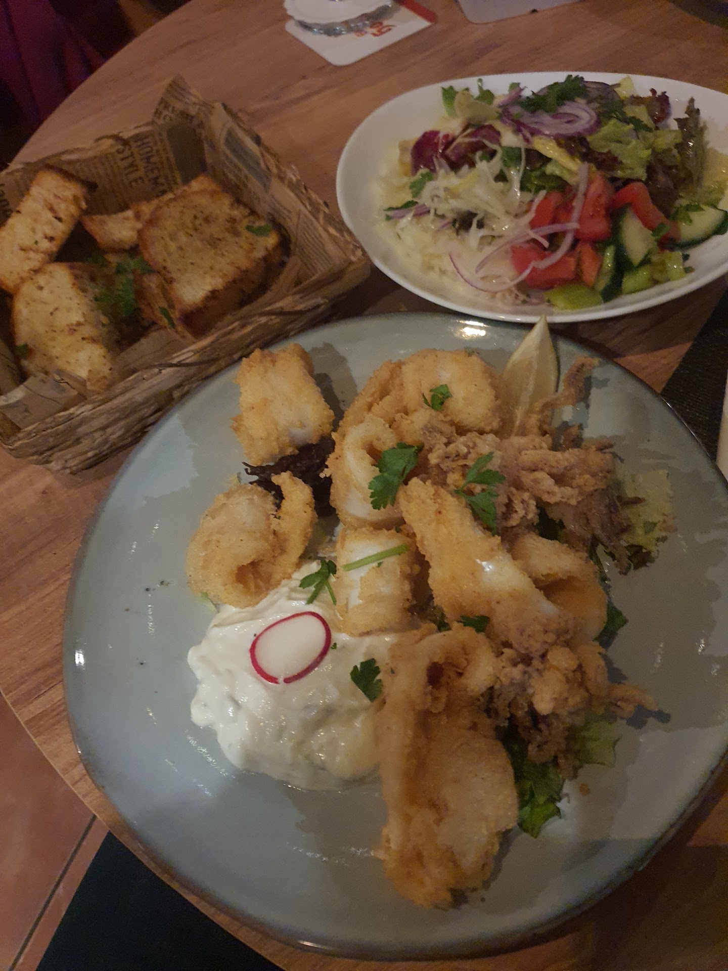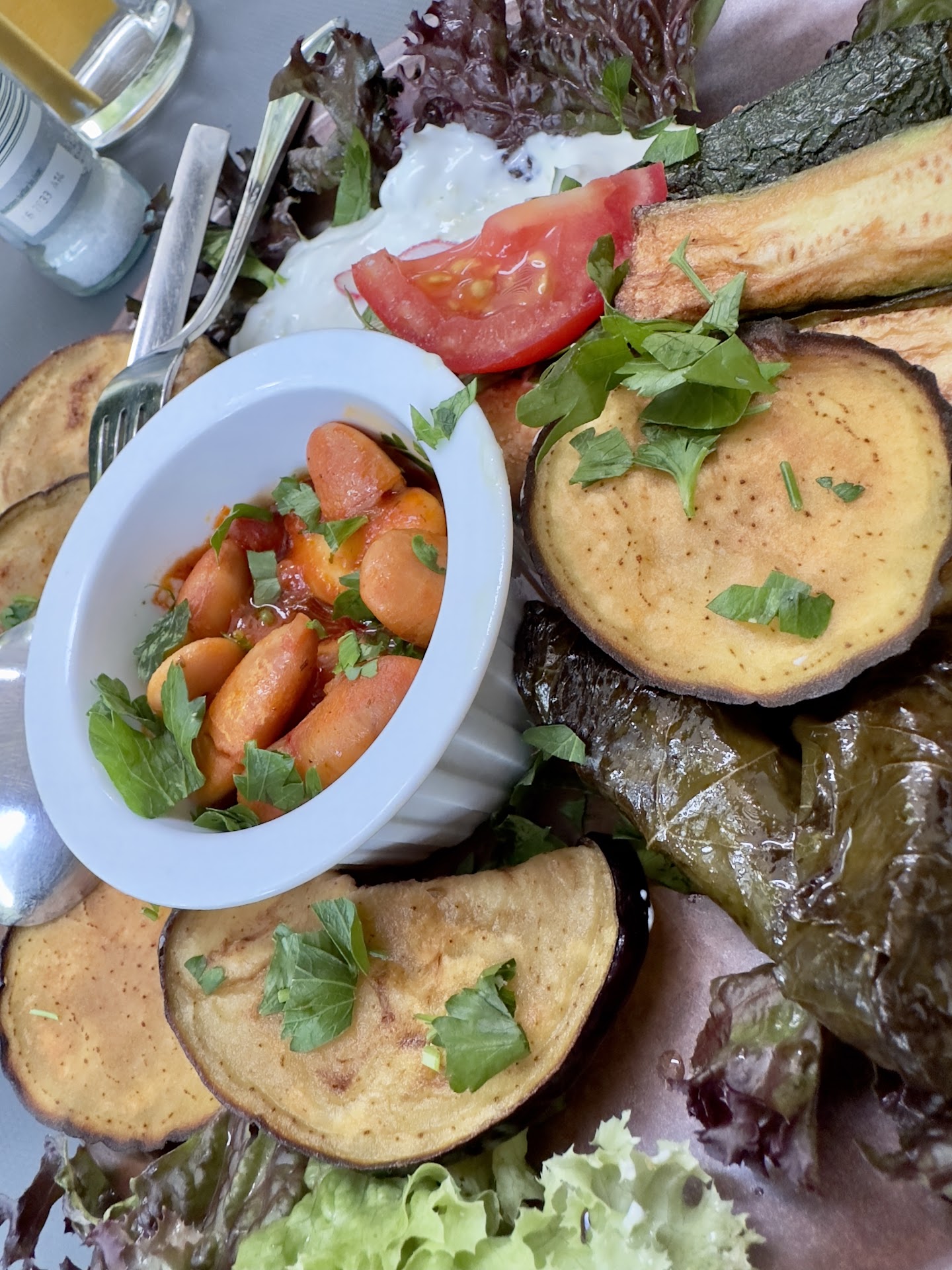 Read moreDie warme Vorspeisenplatte für 15,50 Euro bestand aus 5 kleine Scheiben Baguette (hätte man für 1€ nachbestellen können), dazu etwas tzaziki , eine gegrillte grüne Paprika, 4 gegrillte dünne Zucchini-Scheiben und das gleiche in Auberginen, zwei gefüllte Weinblätter und ein paar belanglose weißen Bohnen in Tomatensoße. alles lieblos dekoriert mit einfachen und geschmacklosen Salat. Als Hauptspeise gab es die Calamares-Kreta für 16 Euro. Mehlierte Tuben, die ansich ganz okay waren, aber genauso lieblos wie die Vorspeise präsentiert wurde ( übrigens wurde uns der Löffel von der Vorspeise einfach wieder auf den Hauptspeisenteller gelegt) Dieses Lokal hat weniger als einen Punkt verdient.. Übrigens war die Gastfreundschaft weit weg von dem wie es man von den lieben und guten...