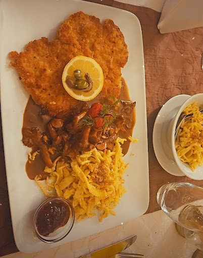 Und auch das Schnitzel hat Maßstäbe gesetzt: In Qualität und Zubereitung absolut auf Augenhöhe mit renommierten Häusern wie dem Hotel Kempinski Vier Jahreszeiten in München.