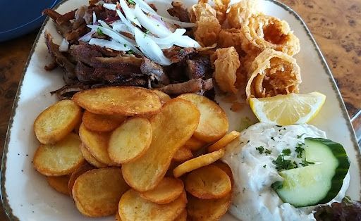 Restaurant hat eine schöne Lage und eine noch besseren Innenhof. Insgesamt sehr sauber und einladend. Angefangen haben wir mit einer Vorspeise. Diese hat wirklich gut geschmeckt. Der panierte Feta ist sehr zu empfehlen. In der Zwischenzeit wurde ein großer TV eingeschaltet und lautstark anfänglich irgendwelche Serien auf ARD und anschließend Fußball abgespielt. Meiner Meinung nach gehe ich in ein griechisches Restaurant um zu essen und Gespräche zu führen. Allerdings war der TV einfach nur zu laut und sehr störend beim Essen. Ein Teil des Personals kann leider kein Deutsch, lediglich gebrochenes english. Nach der Vorspeise war unser Tisch voll mit leeren Geschirr, jedoch hatte die Kellnerin 10 min gebraucht um es abzuraumen. das Personal hatte sich lieber unterhalten und TV geschaut. Wir waren insgesamt mit den anderen Gästen ca 10 Mann ( 5 Tische ). Hier muss auf jeden Fall deutlich aufmerksamer gearbeitet werden.