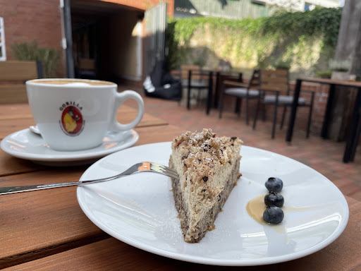 Read moreExcellent coffee in a relaxed atmosphere. The small backyard offers a calm ambiance. Music is not too loud and fitting the rest of the vibe well. I loved the fact that milk alternatives are available free of charge. The cake looked nice, but I wasn’t after something sweet. I might try it another time.