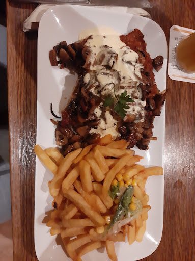 Read moreMan sitzt dort schön. Das war es dann leider auch. Preis-/Leistung des Essen passt nicht. Leider unterirdisch. Pfeffersauce ist Mehlschwitze mit Pfefferkörner, Champignonsauce ist Mehlschwitze mit Pilzen. Rahmsauce bestimmt Mehlschwitze ohne etwas. Bratkartoffeln tiefen vor Öl. Die Portion ist wie drauf geschossen und eher wie Kinderteller. Sehr sehr schade, denn alles andere ist ganz schön. Noch zu erwähnen dass es mehr Überwachungskameras gibt, als Angestellte. Wir testen das vielleicht nochmal und geben gern...