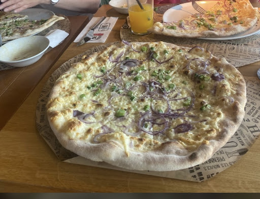 Read moreVorweg sollte man wissen daß hier wohl eher die Bezeichnung Indisches Schnellimbiss geeigneter wäre als Pizzeria. Die Auswahl der Gerichte ist breit, aber alles schmeckt, riecht und sieht indisch aus. Selbst die Pizza. Die Pizza ist nicht schlecht aber gar nicht italienisch. Es gibt selbst auf der Prosciutto nur Truthanformschinken (Zitat aus der Speisekarte). Also nix mit Prosciutto. Eigentlich schade. Es ist aber essbar, der Hunger treibt es letztendlich rein. Hervorheben muss man daß das Personal sehr freundlich und bemüht ist. Eine Toilette fehlt auch. Man sitzt sehr beengt an den vier Tischen. Wir hatten noch das Pech dass in der Küche was anbrannte und wir wirklich sprichwörtlich geräuchert wurden. Danach wurde die Eingangstüre geöffnet um zu lüften und wir saßen im Durchzug bei 5°C Außentemperatur. Na ja, für mal was schnell holen okay, aber ansonsten für uns nicht...