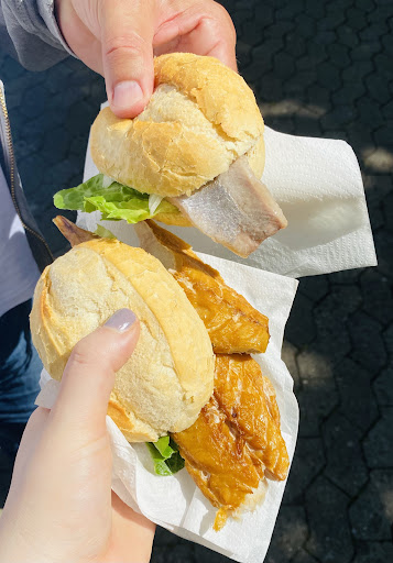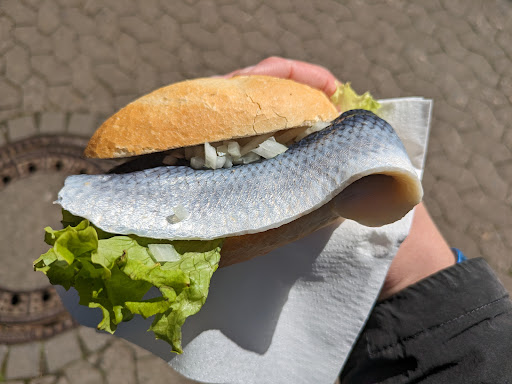 Unmöglicher, extrem unhöflicher Inhaber. Haben uns Platz gesucht, Hälfte der Familie ist rein, wollte Essen bestellen. Unser kleiner saß mit mir draußen und aß sein vorher um die Ecke gekauftes Eis zu Ende. Besitzer kommt wie angestochen raus und jagt uns weg, weil wir angeblich seinen Gästen Platz wegnehmen. Mit einem Wortlaut, den man hier nicht wiederholen möchte. Wir kamen nicht mal zu Wort. Hätte ihm am liebsten die mittlerweile gekauften Fischbrötchen wieder in den Laden geworfen. Haben die an sich nicht schlechten wenn auch nicht überragenden Fischbrötchen im kleinen Park gegenüber auf der Bank gegessen, ohne sie wirklich genießen zu können. Tipp: haben gleich gegenüber die restliche Familie mit Fischbrötchen versorgt. Sehr viel netter und auch noch die...