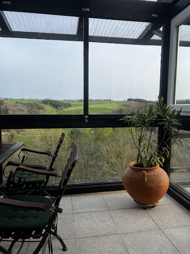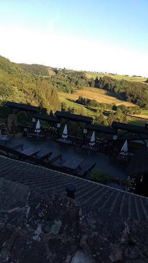 A very local restaurant with a wonderful view of the surrounding rolling hills. If weather allows, choose to sit on the lovely terrace. Not too many parking spots, reservation recommended. Very attentive and caring staff, great for children. We ordered boar roast meat with Spätzle (noodles) and salad bar, Sauerbraten (braised beef). Schnitzel and Chicken Nuggets (real small chicken filets with breading) for the children. Plus a local beer (Zwickel) - all was very tasty. The cook came by and had a short chat. The children's menues are huge and reasonably priced. For 2 adults and 2 children, we paid €78. We felt welcome and had a wonderful break from...