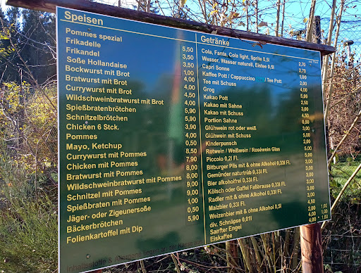 Read moreAlso genau so muss eine Waldschenke sein. Super freundlich sehr gemütlich und einfach kein schnick schnack. Preis /Leistung ist absolut Top für die Kinder Perfekte Lage direkt am Spielplatz, so können die Eltern auch mal in Ruhe ihren Kaffee trinken an dem es auch absolut nichts zu Meckern gibt. Wer aber einen Barista Starbucks oder ähnliches erwartet sollte sich im klaren sein das er hier an der Falschen Adresse ist. Einen Stern Abzug gebe ich nur weil ihr mir heute eine Toastbrot gegeben habt auf der Karte aber Brot stand, für mich eigentlich kein Problem aber ihr solltet dann auch einfach Toastbrot auf die Karte schreiben. Ich kann noch die Wildschwein und Reh Salami empfehlen wird regional hergestellt aus regionalen Produkten super lecker 😊 Das Essen vor Ort war auch lecker und ich muss es nochmal betonen...