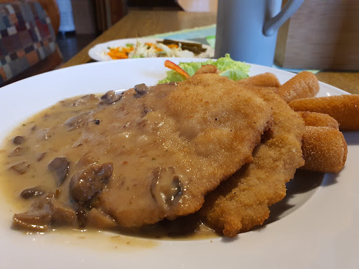 Read moreDas Lokal war am Samstag Abend ziemlich leer, trotzdem kein Grund, das halbe Licht auszuschalten. Wirtin war freundlich, die Auswahl an Essen der Umgebung angepasst. Wir bestellten alle Schnitzel Wiener Art mit Pommes. Der kleine Salat war noch ganz ok, die Pommes auch. Das Fleisch war jedoch reine TK-Ware, die mit den Pommes zusammen im heißen Fett schwamm. Ziemlich ungenießbar war die generelle Meinung, dazu noch ungewürzt (kein Salz oder Pfeffer). Kein Erlebnis, das man unbedingt...