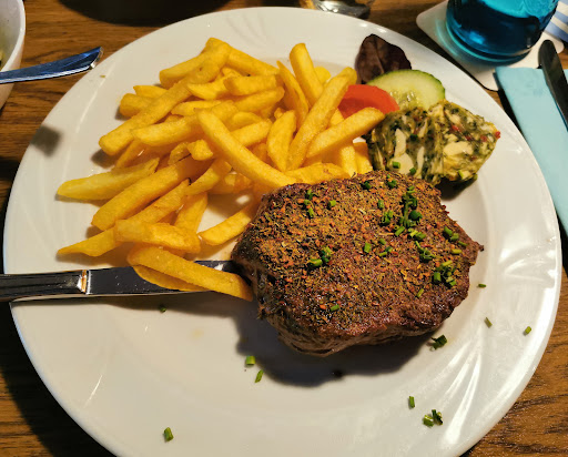 Waren mit 10 Personen zum Abendessen dort. Begrüßung durch die Dame hinter dem Tresen leider Fehlanzeige. Freundlichkeit eines Gastronomen schaut anders aus. Da bei unserer Gruppe zwei Kinder anwesend waren, sollten dafür Kinder-Essen bestellt werden. Eine dritte Person fragte, ob sie zwei Portionen Nuggets haben könnte. Antwort der Service-Dame: dies wären ,,subventionierte“ Essen, sie würden damit kein Geld verdienen (bei 7,-€ pro Portion…). Von den anderen Erwachsenen hatten fast alle das teuerste Gericht auf der Karte bestellt. Null Entgegenkommen der Service-Dame. Völlig lustlos das Essen serviert, Salate einfach über den Tisch geschoben, kein freundliches Wort verloren usw. Habe schon einiges erlebt, aber diese Erfahrung gestern Abend war wieder einmal die Krönung. Der ganze Laden war um 19:00 Uhr komplett leer, wir waren dann die einzigen Gäste. Dies wundert mich aber nicht, bei solch einem Verhalten. Einfach schade, zumal das Essen wirklich ok ist. Meiner Meinung nach haben solche Mitarbeiter den Beruf verfehlt und sollten sich selbst mal hinterfragen, ob sie in der richtigen Branche arbeiten…So geht man nicht mit Gästen um, die einen Geburtstag feiern wollten. Fazit: einmal...