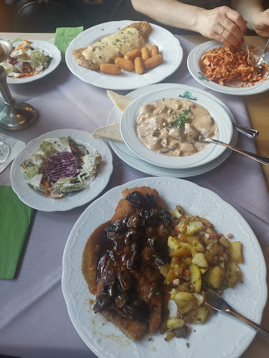 Ein Restaurant für die ältere Generation, kein einziges Kindergericht auf der Karte...Hochstuhl für Kleinkinder 1x vorhanden, bitte vorher anmelden und bekannt geben, falls einer benötigt wird...10 Gerichte zur Auswahl... wenn man sich freut Rinderroulade zu essen, bekommt man diese mit Schweinehack gefüllt, steht nicht in der Karte... Rinderroulade nimmt den Geschmack von Schwein an und die Freude wurde getrübt...Dazu gibt es keinen Salat wie zu den anderen Gerichten, auf dem Teller sieht es sehr dürftig aus, zwei Fertig-Miniknödel, Rotkohl aus der Dose, genau so die Bohnen im Salat aus der Dose...ist die Frage, was wird dort selbst gekocht, oder selbst zu bereitet...zum Salat kein Dressing, Salatblätter schmeckten noch nach Wasser...in der Vorsuppe musste man den Eierstich suchen, damit es nach etwas weißem aussieht, wurden noch ein paar Graupen ins Wasser geschmissen...auch von der Regelung, dass das Wasser aus dem Wasserhahn (Leitungswasser) für ein Kind nicht auf die Rechnung gehört, hat diese Gaststätte noch nie etwas gehört. Wenn man mit einer größeren Anzahl von Leuten kommt, bitte viel Zeit mitbringen, denn es werden prinzipiell zuerst die kleinen Tische bedient, auch wenn man das gleiche Essen wählt... Rumpsteak war medium wie bestellt, der Teller überfüllt mit Pommes...was auf dem Rouladentellern fehlte, war dort zu üppig, dazu auch...