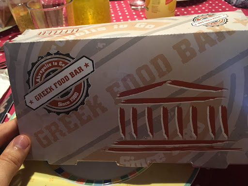 Ja, die Verpackung ist cool! Aber das Mengenverhältnis, insbesondere beim Grillteller war schlecht. Tzaziki scheint ein knappes Gut zu sein, denn damit wird extensiv gespart. Auch das Fleisch (Drei Spieße, sehr klein) war von der Qualität und der Quantität nicht unseren Erwartungen entsprechend. Für knapp 10€ erwartet man doch wenigstens satt zu werden, gerade beim Griechen.