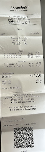 Read moreIn besten Händen Am 5.1.23 war es soweit. Franco und Susanne übergeben das Stromboli an ihren Sohn Roberto und Tahsin. Das junge Team bringt beste Gastgeber-Qualitäten mit. Mit Roberto als Chefkoch überzeugt die Trattoria weiterhin mit abwechslungsreicher italienischer Küche auf hohem Niveau. Gefeiert wurde mit vielen Stammgästen in bester Partystimmung. Dafür sorgte DJ Ersen, der jeden Musikwunsch erfüllte. Das Stromboli-Team hat es wieder bewiesen: Herzlichkeit, Familiensinn und Kochkunst bilden ein vorzügliches Menü, dass die Gäste begeistert.
