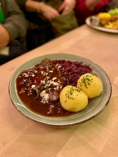 I ordered their "Sauerbraten mit Rosinensoße, Apfelrotkohl, Kartoffelknödeln und Mandeln".