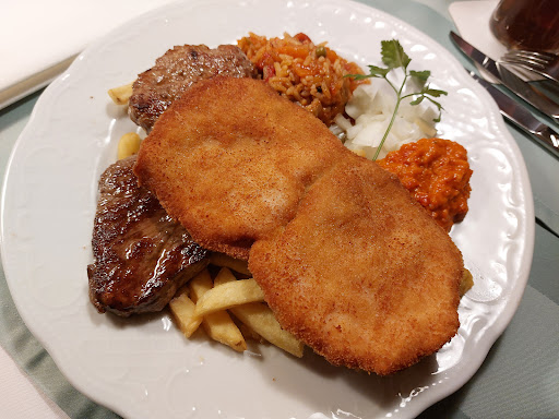 Read moreMit 5 Personen besuchten wir das Restaurant. Das Ambiente, gepflegt. Gegessen wurden Grillteller (16,90), Balkansteaks (15,90), Leber (12,90), Black&White (14,90) Positiv war die Möglichkeit, Salat mit 3 Dressings aus der Salatbar selbst zusammenstellen zu können. Alles frisch und schmackhaft, wie die bestellten Gerichte auch. Qualitativ sehr gut, Saucen gut gewürzt. Mengenmäßig waren alle Balkangerichte und der Grillteller reichlich. Das Gericht Black & White war diesen Preis im Vergleich zu den anderen Gerichten ein Scherz. Nur durch Reste der anderen Gäste wurde ich "Normalesser Mitte 50" satt. ||Einen negativen Eindruck hinterließ der Service. Ein freundlich wirkender Kellner war "zu verkaufstüchtig" und fragte nahezu alle 5 Minuten, ob man noch Getränke haben möchte -auch nachdem kurz zuvor bestellt worden war. Das war nicht serviceorientiert und wir fühlten uns bedrängt. Scheinbar war das Trinkgeld von 5% nicht ausreichend. Es wurde uns weder ein "Schnaps" oder sonstiges Getränk vom Haus offeriert. Muss nicht sein, ist aber eine Geste, die wir von anderen Balkanrestaurants kennen.||Fazit: Leckere Speisen Gute Speisequalität für die man problemlos 4-5 Punkte geben kann. Für den Service höchstens 2-3. Grillteller 16,90; Rinderleber 12,90 habe ich schon 1-2 Euro günstiger gesehen, aber okay, da lecker. Es stellte sich zudem heraus, dass die veröffentlichten Preise auf der Website nicht übereinstimmten und die Preise der Gerichte auf der Speisekarte um 1 €...