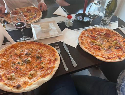 The food is nice, I go often to eat pizza and it is not bad at all. Prices are low, except for the water, and the service is fast. They offer you one bruschetta and two olives as "antipasto" for free before the main course, and this is a very nice touch. The only negative point is that the staff only speak German but not a single word of English, and this is a major drawback for a restaurant that they should address. Except for this, I can recommend this place for business lunch or if you want to eat something good,...